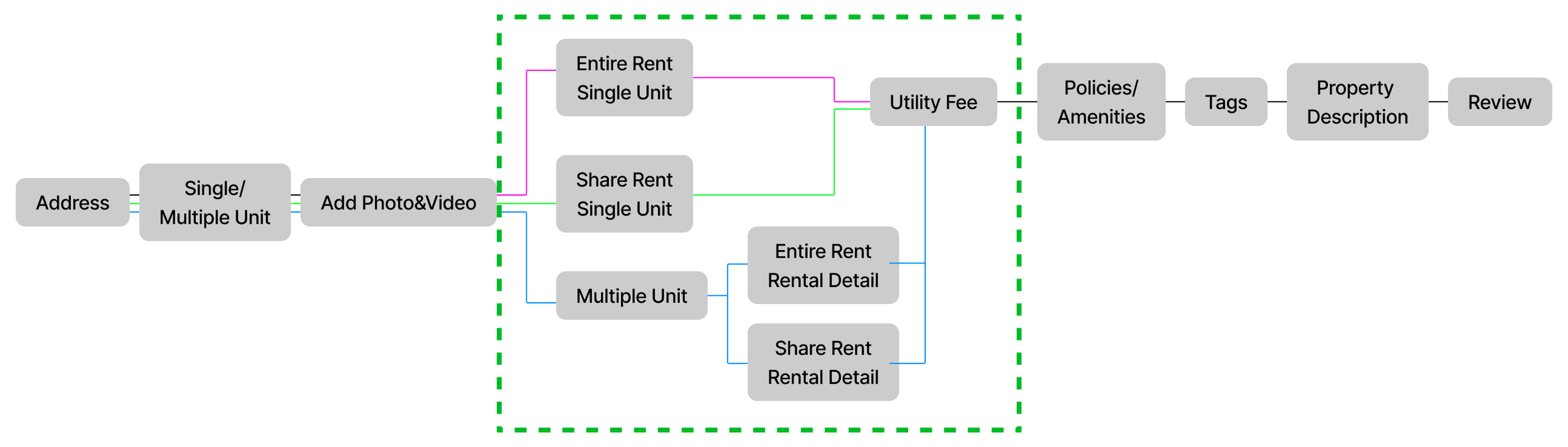 We shrink the listing steps from 20 steps into 10 step. This helps to save landlord’s 40% of time and increased user completion rate.