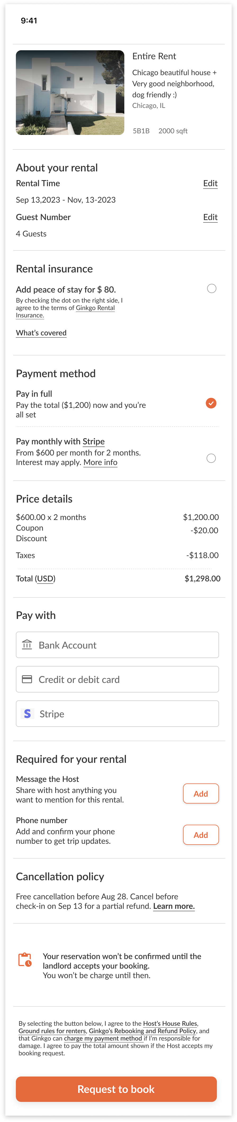 To simplify tenant-landlord interactions, we designed a mobile version to allow tenants to quickly book rentals without manual confirmation from landlords.