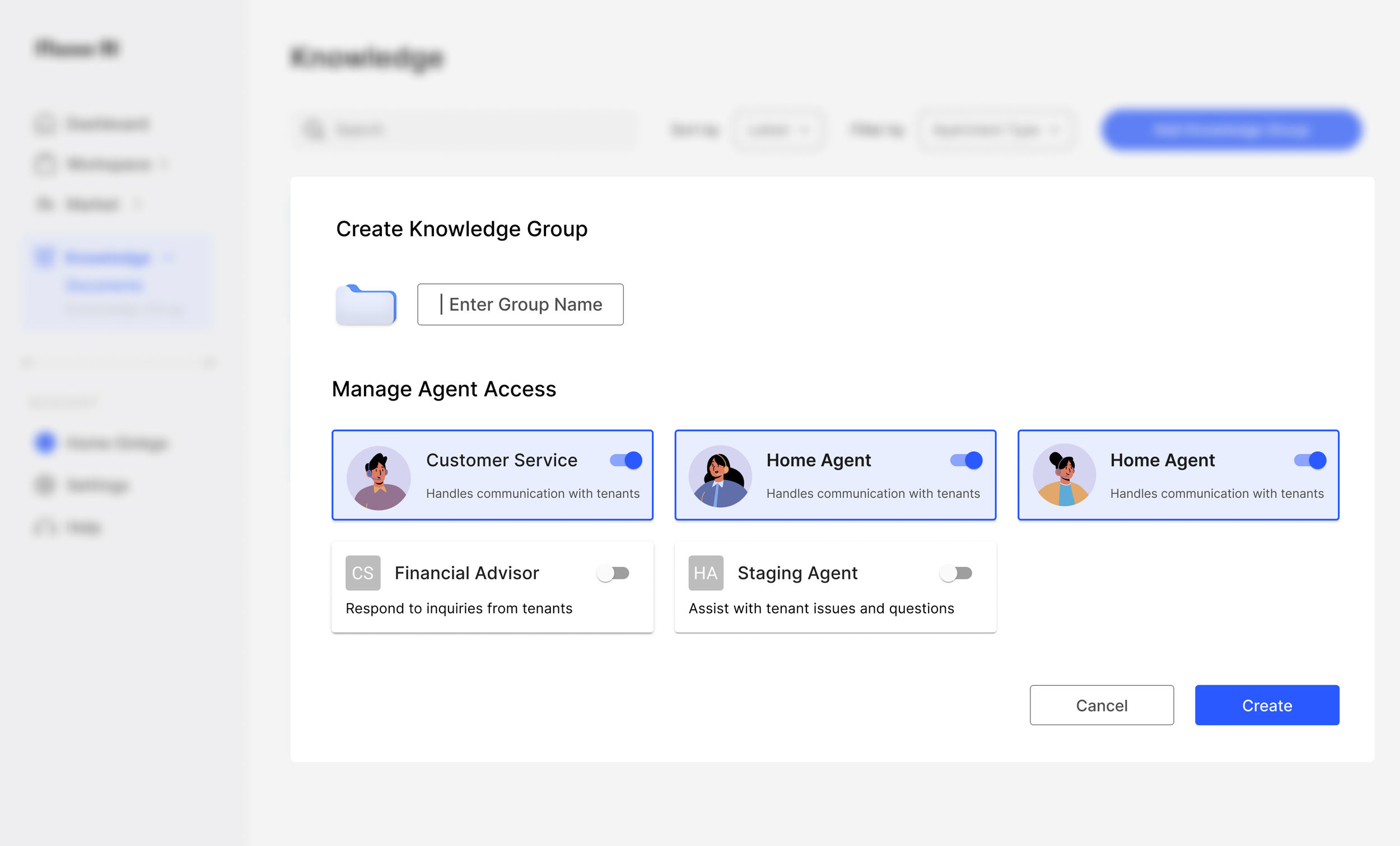 Knowledge Group provides a space for users manually input and organize data to AI agents.